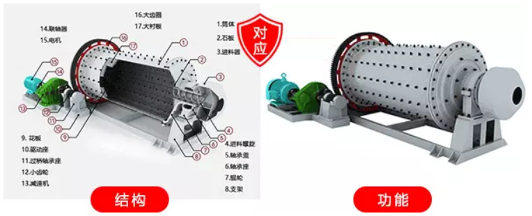 球磨机在工作时,通过电动机和减速机把扭力传给球磨机的大小齿轮,从而使球磨机筒体转动,由于球磨机筒体的转动与筒体衬板共同作用将一部分钢球(或其他研磨介质)带升到一定高度,进行自由坠落运动产生冲击力,撞击筒体内的物料,其余部分钢球进行泻落运动产生摩擦力和物料混在一起随着筒体的转动不停的与物料进行碰撞和研磨。磨碎后的物料通过空心轴颈排出。
