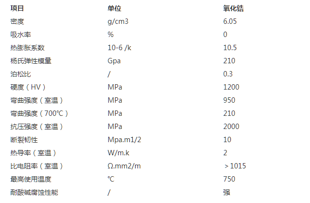 氧化锆陶瓷技术参数